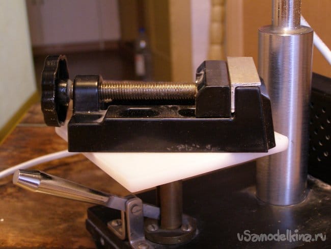 Правда есть у него не большая заковыка, это стол вертикальной подачи ( да еще и круглый). Я, тогда не придал этому значения. Да и работая без тисов, это ни как не сказывается. А, вот с тисами, сложно. Они просто не входили на него.