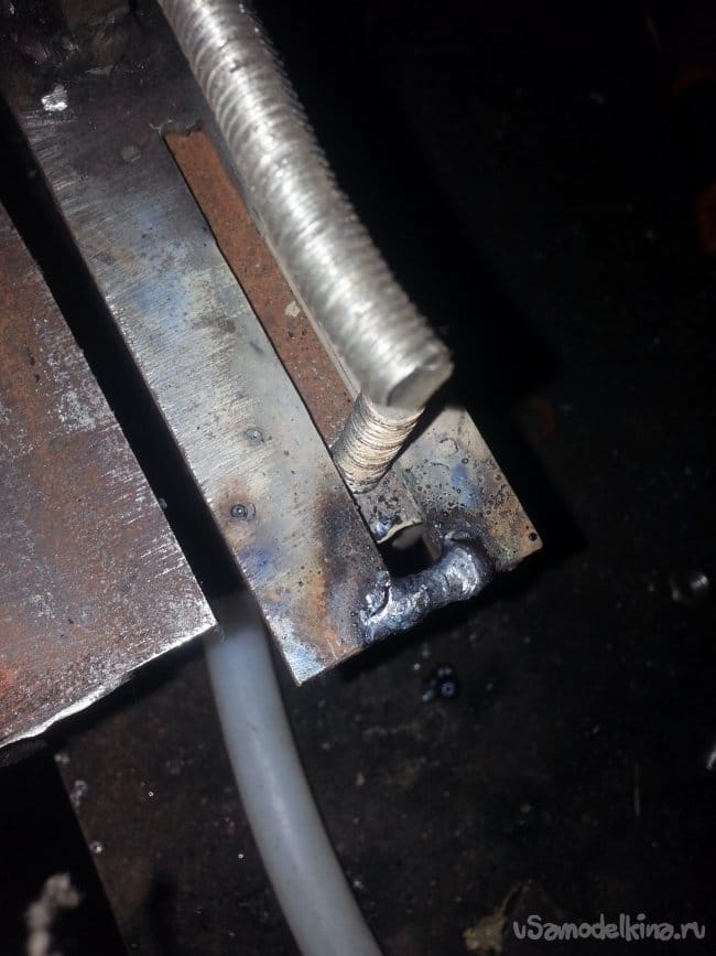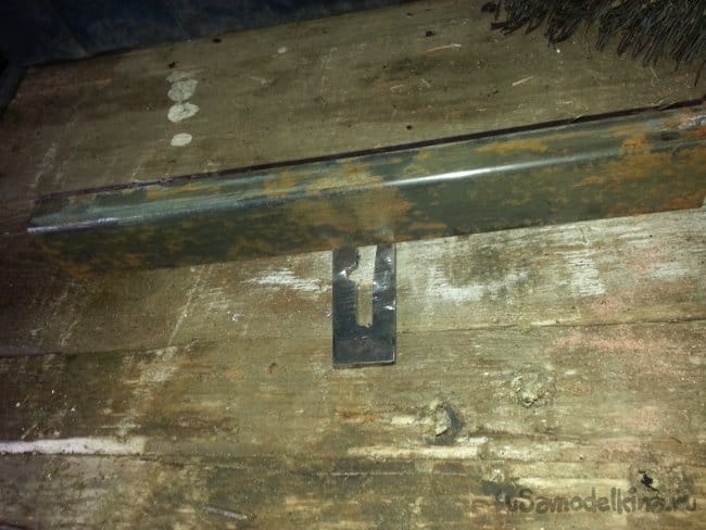 Привариваю кусочек металла на край уголка, чтобы планка по плоскости не гуляла