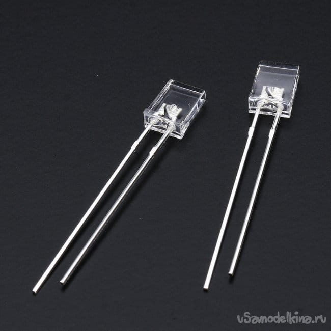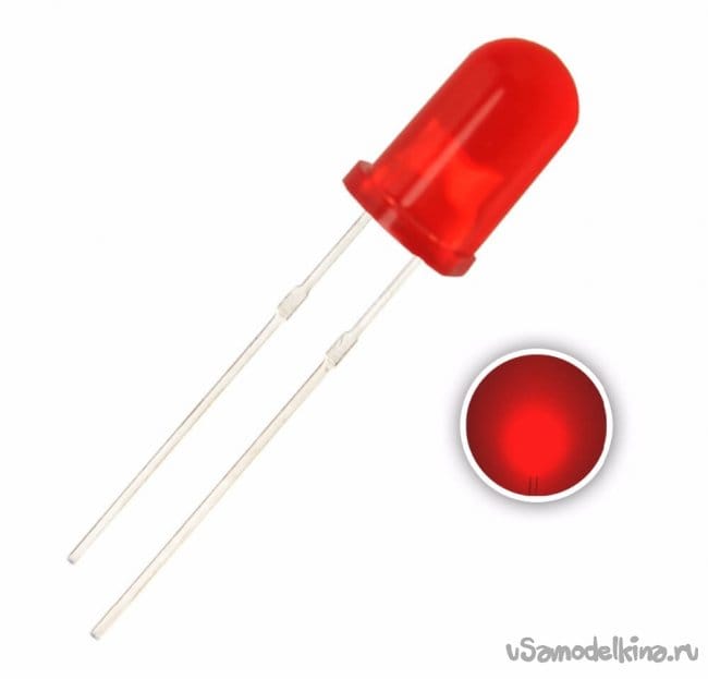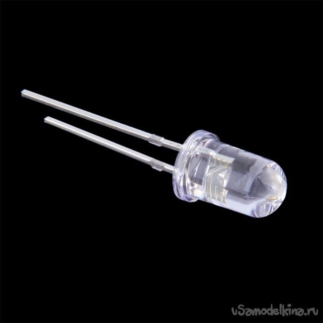Далее разрезаем один провод, примерно пять семь сантиметров от аккумуляторов и припаиваем светодиод, я взял такой