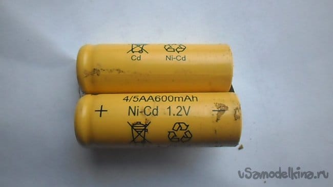 Для начала возьмём два аккумулятора, я взял аккумуляторы ёмкостью 1200 мА\час каждый и напряжением 1,2 вольта, желательно, чтобы аккумуляторы заряжались