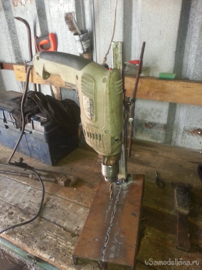Всем здрасти, сегодня мы поговорим о таком станке, как сверлильный, бывает очень часто в хозяйстве что-то нужно просверлить, можно и так просто взять дрель и просверлить, но не все рукастые. Бывает, как я иногда криво просверлишь, и все испорчено. На сверлильном станке эта задача получается никак быстрей и ровней как руками. А что делать если нет такого станка, выход у самоделкина один - смастерить.