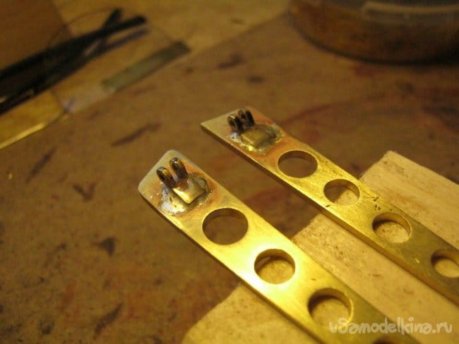 Для крепления и регулирования длины ленты, из той же луженой проволоки спаяны несколько деталей.