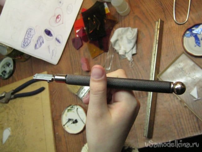 Стеклянные заготовки при резке должны лежать на ровном не гнущемся основании, слегка упругом. Для нерегулярной работы на твердую поверхность можно положить 3…5 слоев бумаги, кусок ДВП. Мелкие детали не столь критичны к поверхности.