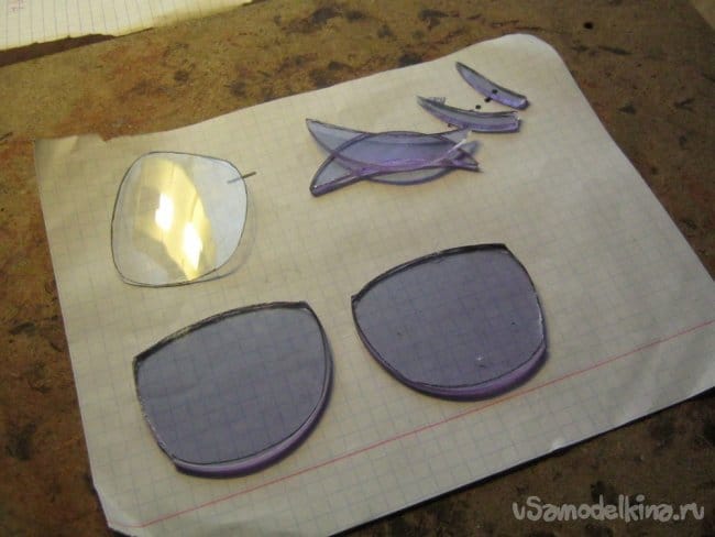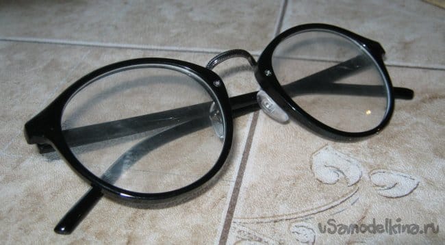 Специальные «очковые» мелочи для работы брались от копеечной пластиковой оправы с Али Экспресса. Дешевые китайские оправы, как правило, сугубо декоративны – имеют невеликий размер, мягкую непрочную пластиковую оправу и тонкие прозрачные пластиковые «линзы».