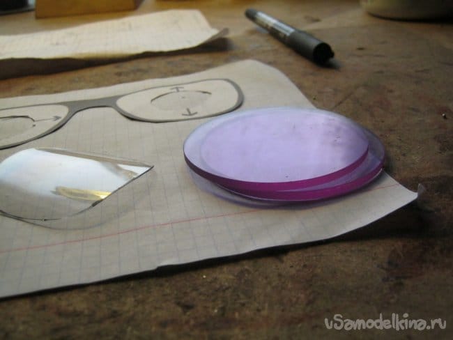 Стоимость готовых очков такого рода довольно высока, поэтому сделана попытка изготовить то, что можно самостоятельно. Были приобретены две заготовки – кружочки ø60 мм из неодимового стекла толщиной 3 мм.