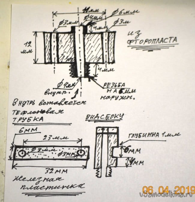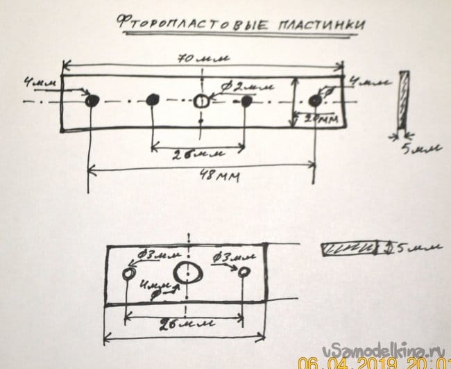 Вырезаем две пластинки из фторопласта как на рисунки.