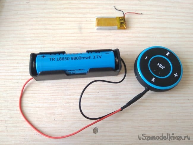 Шаг 1: Первым делом я разобрал блютус девайс, отсоединил штатную батарейку и подключил на её место провода от аккумуляторной кассеты (Касета — 10 рублей, аккумулятор 100 рублей за штуку). Вольтаж у этих аккумуляторов чуть выше чем требуется - четыре вместо трёх вольт, но это не критично. Подсоединил большие наушники, включил на полную громкость и оставил на весь день, чтобы проверить длительность работы на одном заряде. К вечеру музыка всё ещё звучала, а заряд аккумулятора не просел даже на 50 процентов. Телефон с которого воспроизводилась музыка, кстати говоря разрядился почти в ноль. Продолжать эксперимент до полной разрядки смысла не было, так как 12 часов непрерывного звучания с запасом перекрывает мои требования.