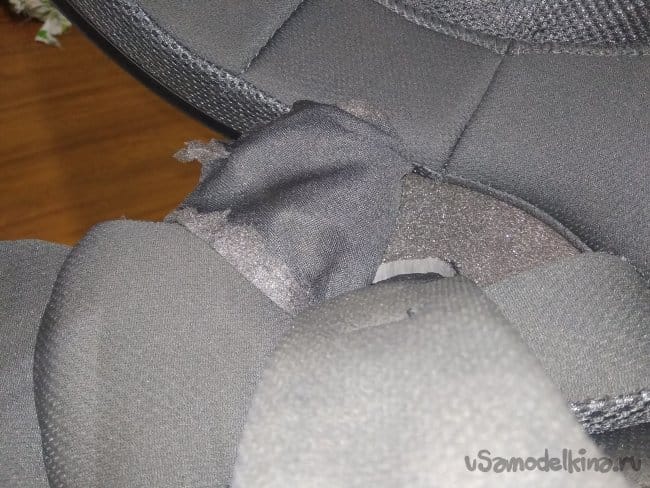 Перед тем как прорезать отверстие под блютус, я аккуратно оторвал ткань обшивки, чтобы в последствии обтянуть ею края. Провод питания и джек от наушников подвёл таким образом чтобы они нигде не торчали и одновременно предотвращали устройство от выпадания из гнезда. Всё получилось удобно, за исключение одного момента. На ребре блютуса, находится микроскопический тумблер (на некоторых фотографиях видно), который отключает питание устройства и доступ к нему ну никак не получалось сделать удобным. В итоге решил установить выключатель «массы» прямо на проводе питания. И как-то быстро припаял кнопку, установил под обшивку и… и забыл даже сфотографировать. Упс.