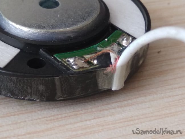 Провод для динамиков взял от старых наушников. На всякий случай затянул в термоусадку лопнувший корпус джека. Нагрузки там вроде бы не предполагается, но лучше перебдеть…