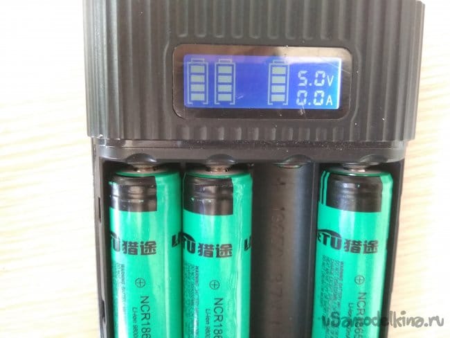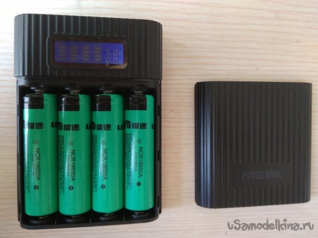 При изготовлении этой самоделки, я заменил штатный источник питания, которого явно не хватало, на более ёмкий. Вместе с этим появилась возможность не ждать пока конструкция заряжается, а просто менять разрядившийся аккумулятор на свежий, по принципу пальчиковой батарейки. В качестве зарядного устройства я использую банк энергии для телефона. В него вставляются четыре аккумулятора 18650, при этом он не утрачивает свои основные функции при отсутствии одной или нескольких «батареек». И в добавок там есть индикатор заряда для каждого аккумулятора. Корпус банка энергии специально выбирал такой, чтобы легко открывался и закрывался.