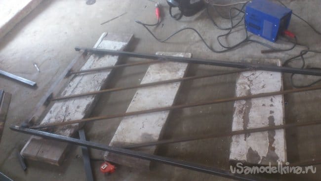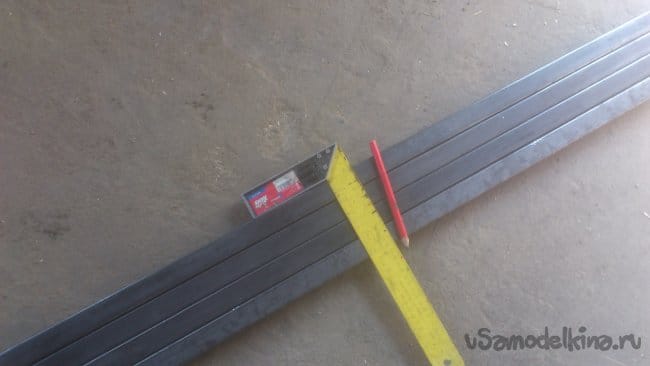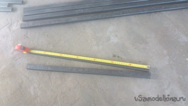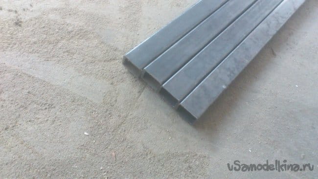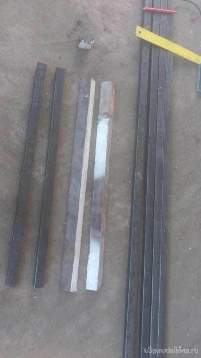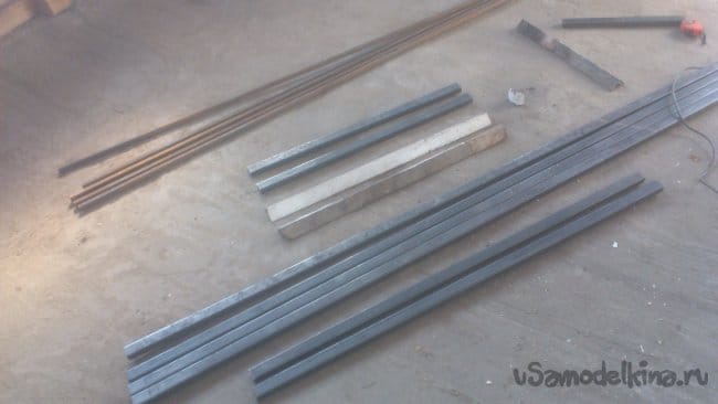 Для начала я приготовил материалы. У меня были профильные трубы 20 на 30 мм. Четыре отрезка по 3 метра: