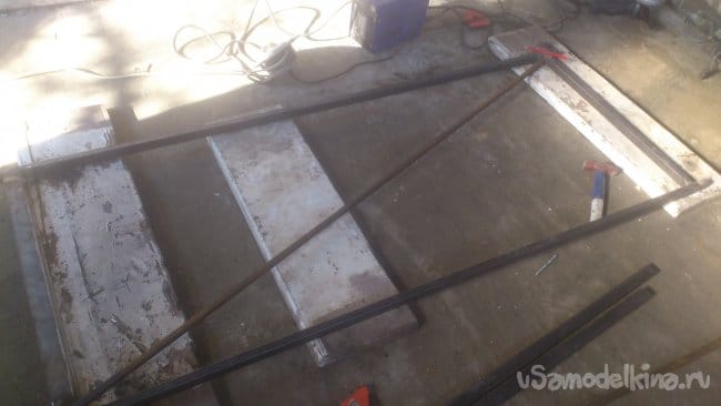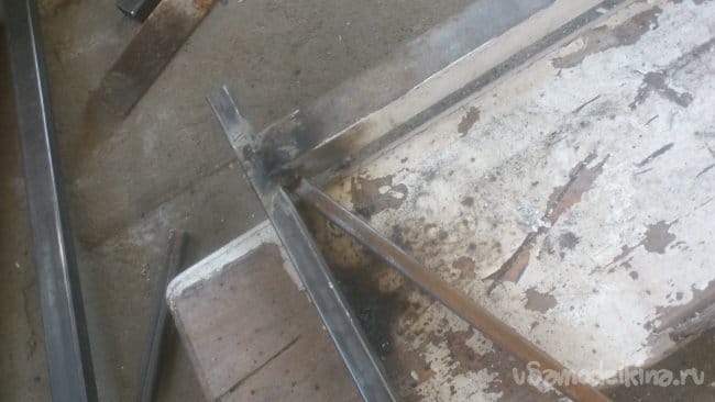 Нижние перекладины я решил делать из старого уголка, валяющегося в металлоломе (остался после того, как я разобрал печь):