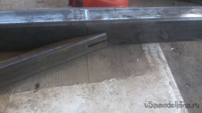 Теперь берём один отрезок трубы 15 на 15, и делаем из неё диагональ: