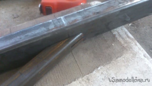 Забыл упомянуть ещё об одной, очень важной вещи. Если вы свариваете конструкцию из труб, которая будет эксплуатироваться на улице, нужно обязательно делать технологические разрезы, или сверлить отверстия во всех нижних концах труб, которые получаются "глухими". В противном случае, скопившийся внутри конденсат, рано, или поздно замёрзнет и разорвёт трубу! В теории кажется, что это - маловероятно. На практике -же, конденсат скопившийся за одно лето, зимой разрывает стойки новых ворот и калиток! Но достаточно небольшой щели в нижней части, и, благодаря конвекционному движению воздуха, внутри конденсата не будет! А если и будет - выльется через это отверстие)))). Поэтому, такое условие - обязательно.