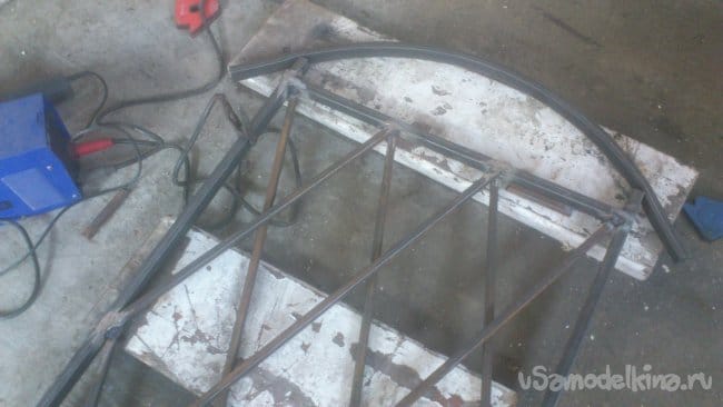 Приварил их на верхушки стоек, сделав фигурные вырезы: