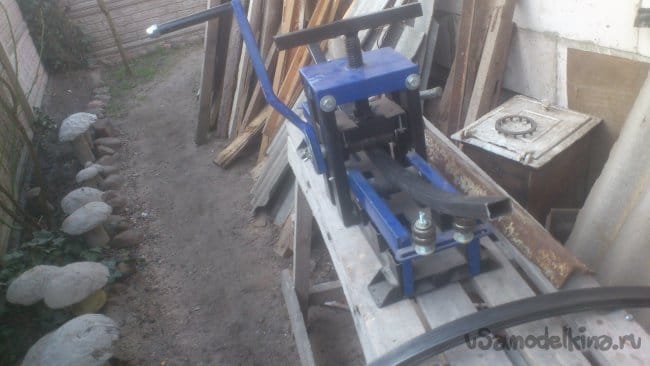В этом мне поможет мой самодельный трубогиб, который уже давно пылится на полке без работы: