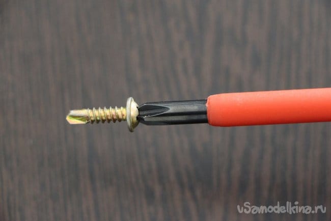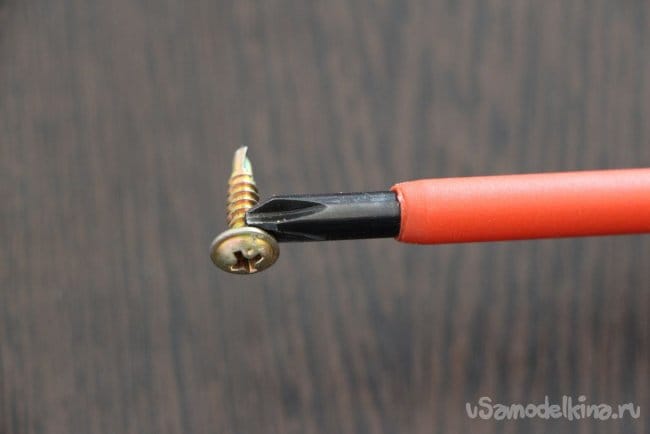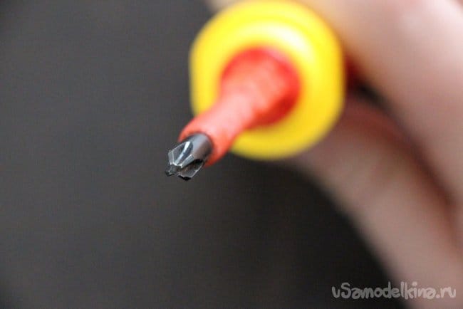 Ручка отвертки выполнена из добротного, без запаха, пластика. Красные участки прорезинены, что придает уверенности в работе.