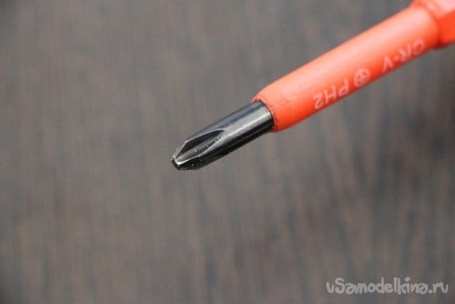 Производителем заявлена CR-V сталь с термической обработкой. Отверткой поработал неделю и вот как выглядят шлицы PH2 до работы: