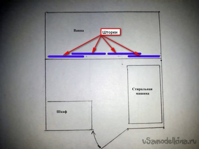 При получившейся планировке они возможности использовать под ванное пространство. Мешали ширина шторок и ноги от ванны. Сколько я не искал в магазинах, что-то, что могло подойти, все было напрасно. Решено было сделать шторки самому.
