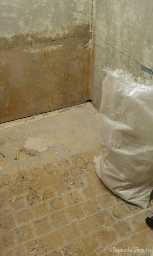Зачищены стены от краски и старой мастики, на которой сидел кафель.