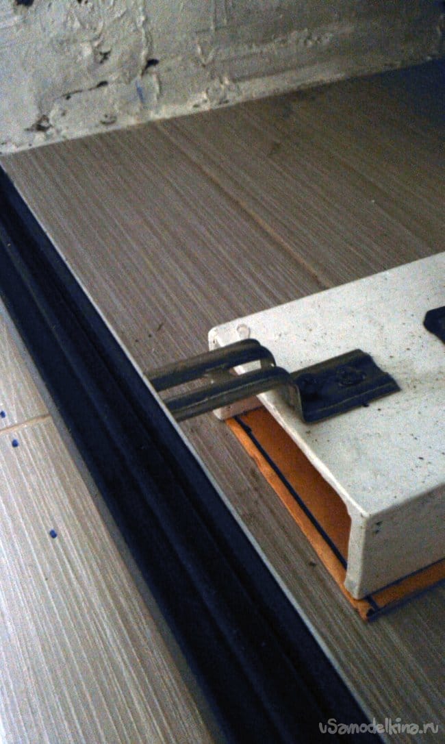 И последний штрих. Если вы обратили внимание на предыдущей фотографии из под шторок видны торцы швеллеров подставок. Они портят общий вид. Я решил этот вопрос просто. Вырезал два кусочка панелей нужного размера и посадил их на жидкие гвозди. Стоят уже много лет. Хорошая штука эти жидкие гвозди.