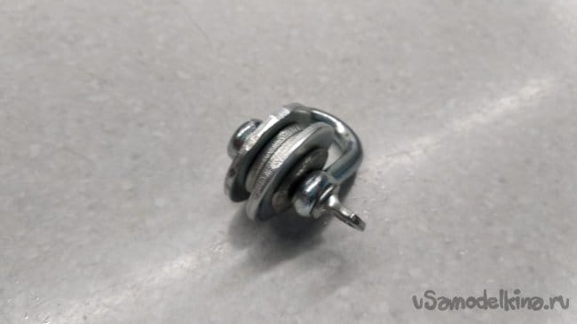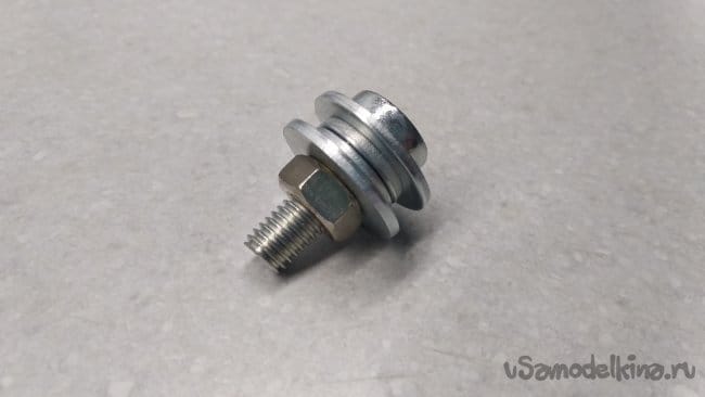 Внимание! Такой вариант изготовления блока предусматривает возможность неприменения сварочного аппарата, но будет лучше, если перед срезом или после, прихватить электросваркой (две-три точки) к крайним широким шайбам головку винта и гайку.