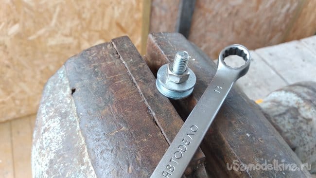 Для этого, зажав головку винта в тисках, туго затянуть гайку.