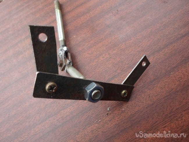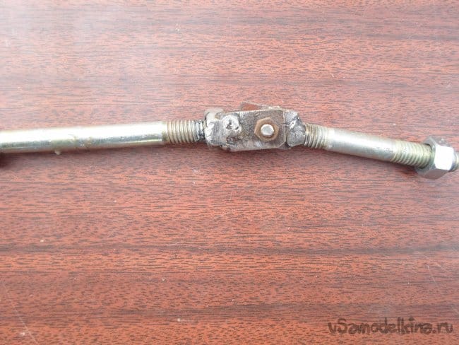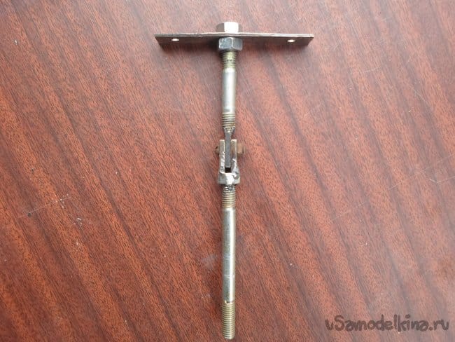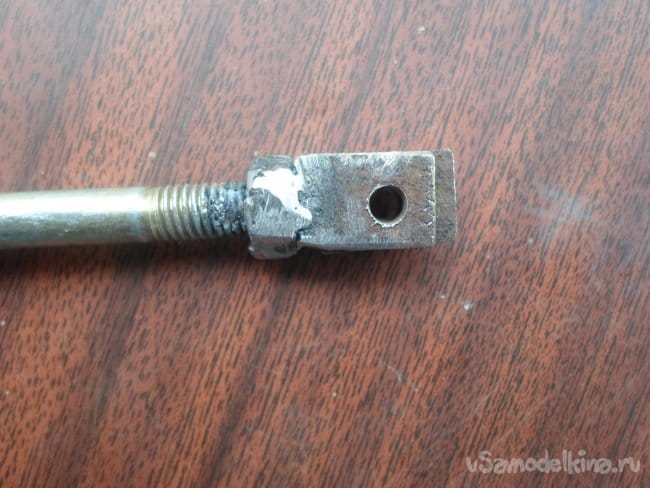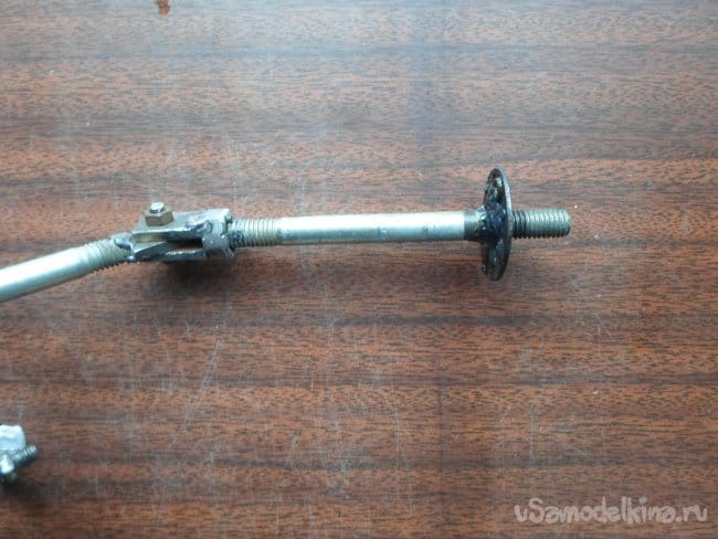 После того, как мы всё приварили, берём получившиеся заготовки и соединяем их болтом М4. Проверяем, чтобы заготовки могли свободно ходить относительно другой заготовки, если всё ходит, то переходим дальше, если нет тогда подтачиваем углы у заготовки с короткой шпилькой.