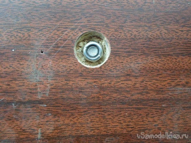 Чтобы третья рука не проваливалась в лист ДВП к её основанию отступив примерно 2 см привариваем шайбу.