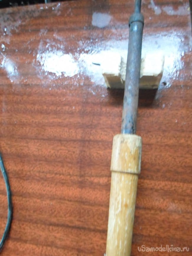 Я решил ещё сделать подставку под паяльник. И просто вырезал её из дерева лобзиком.