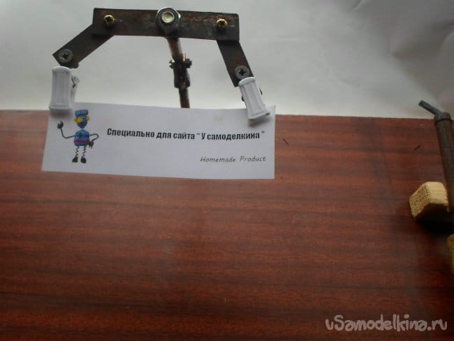 Здравствуйте друзья радиолюбители и посетители сайта «В гостях у Самоделкина», иногда при пайке плат и другого подобного, возникает необходимость придержать спаиваемую деталь, чтобы она не двигалась. И чтобы облегчить пайку я решил показать Вам как сделать "Третью руку" для пайки различных плат и микросхем. Зажимы данной "Третьей руки" выполнены из пластика, что делает их диэлектрическими. " Третья рука " будет закреплена на основании из ДВП на которое можно будет прикреплять разные приспособления для пайки такие, как: держатель паяльника, катушка с припоем, подсветка, лупа, ну и многие другие которые Вы захотите прикрепить. Достоинства данной конструкции " Третьей руки " заключаются в : простоте изготовления; доступные материалы; Зажимы будут выполнены из пластика, что необходимо при пайке схем с напряжением.