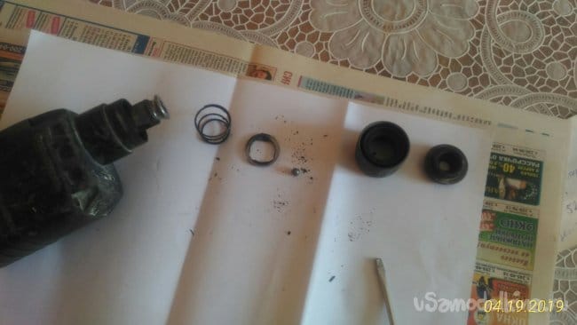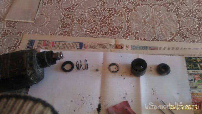 После этого вынимаем фиксирующую шайбу, пружину и еще одну прокладку.