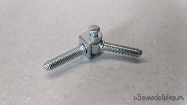 Собрать все изготовленные детали вместе, скрепляя их между собой набором из метизов М6, устанавливая в зазор между вилкой и втулкой ввёртной петли, шайбу М6.