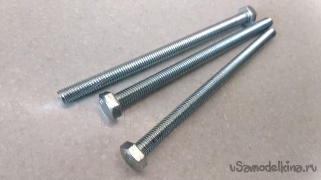 Для удобства резки по одинаковому размеру, можно предварительно накрутить две сквозных гайки М8.