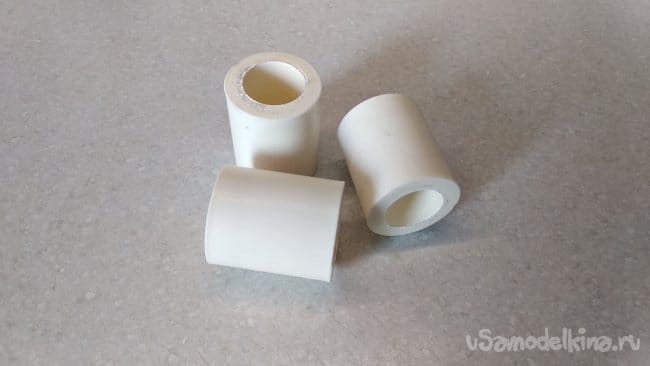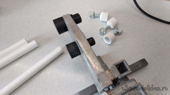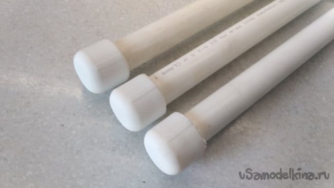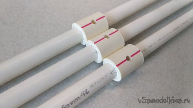 При помощи сварочного аппарата установить их на одном из торцов полипропиленовых труб ПП 20, приготовленных для изготовления «ног» штатива.