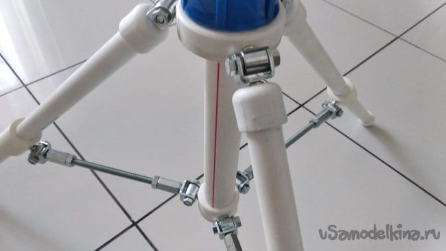 Изготовление распорок идентично изготовлению распорок, описанных в опубликованной ранее статье «Телескопический штатив своими руками», которую можно найти на сайте «У Самоделкина».