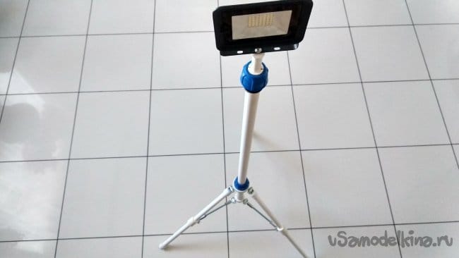 В верхней части штатива я установил светодиодный прожектор, но можно, в зависимости от крепления, установить несколько прожекторов, с возможностью разной направленности освещения.