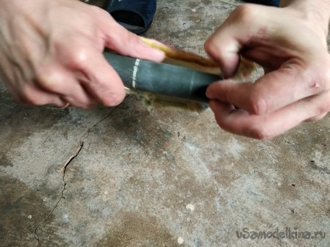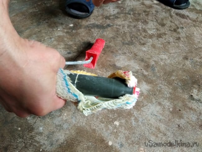 Первым делом берем валик за противоположные края, и прокручиваем относительно оси.