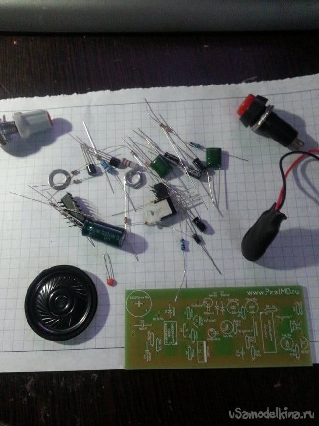 Раньше я не собирал подобные штуки и решил не заморачиваться и купить набор для сборки через интернет. Нашел подходящий сайт, сделал заказ, осталось только ждать. Ждал я набор 25ть дней, набор обошёлся мне 900 рублей. И так приступаю к сборке. Вот этот набор, все в комплекте деталей не особо много, думаю соберем и все сразу заработает, ведь пирата не надо настраивать, только подстраивать переменным резистором