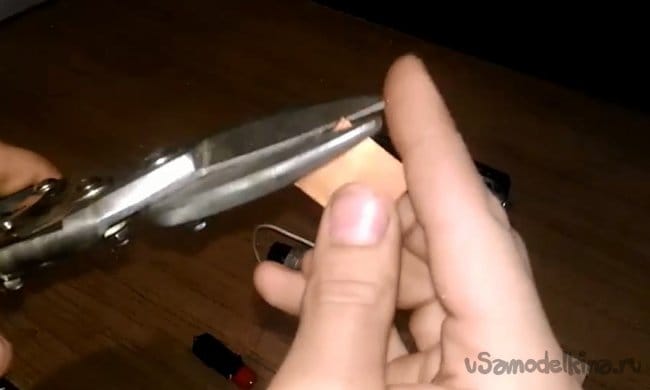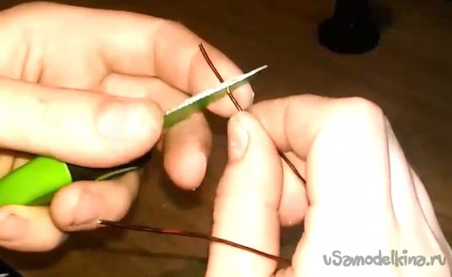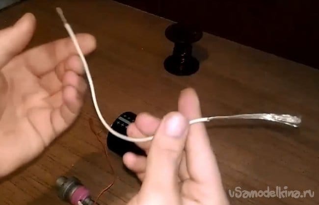 Продеваем в маленькое отверстие провод с небольшим запасом