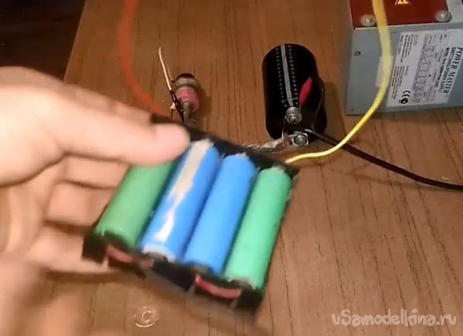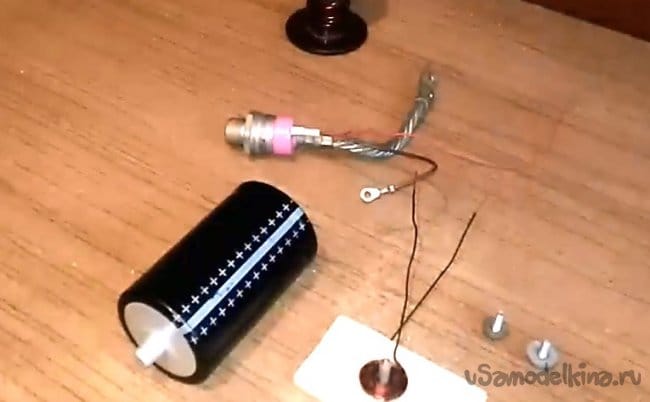 Таким образом должен остаться только 1 провод от тиристоа, при замывании которого на плюс батарейки на катушку подается напряжение.