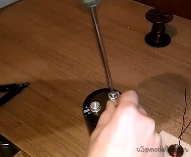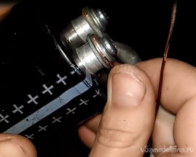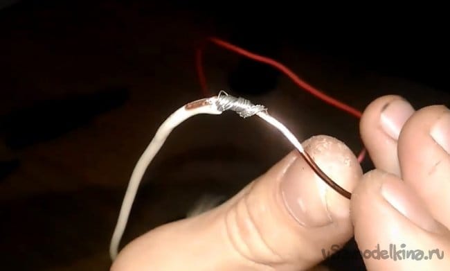 Второй конец провода так же методом "скрутки" соединяем с концом обмотки