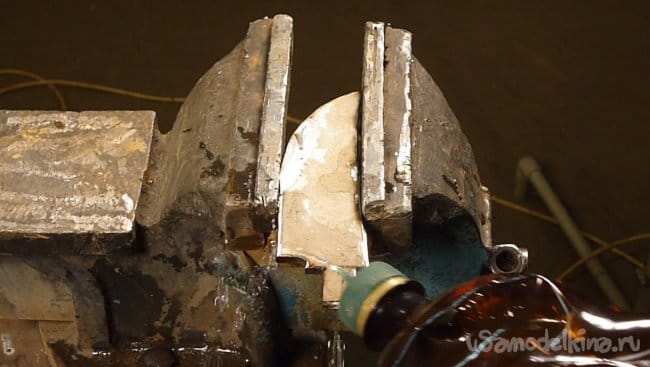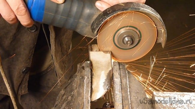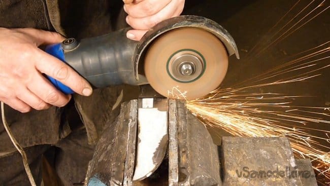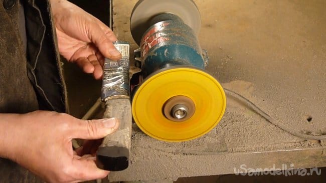 При работе болгаркой заготовку постоянно остужали водой, что бы не допустить перегрева.