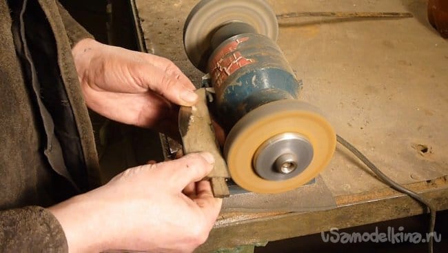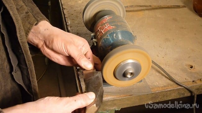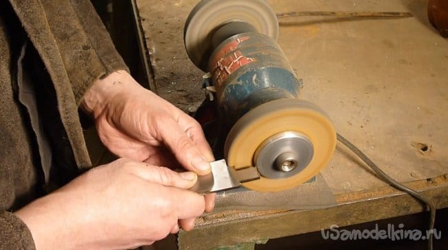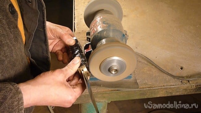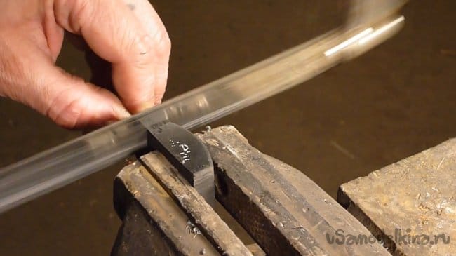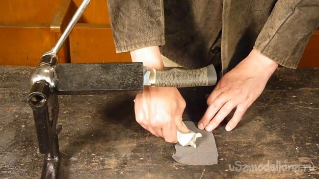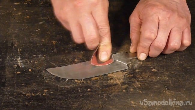 Далее зачистили клинок наждачной бумагой, постепенно увеличивая гритность.