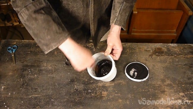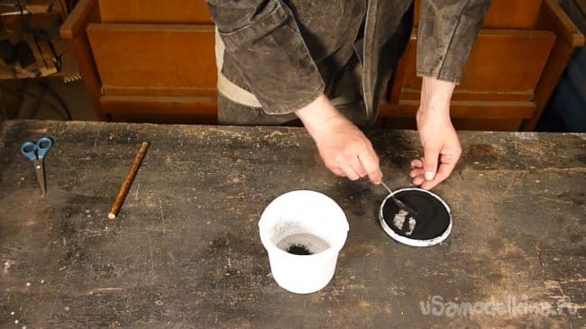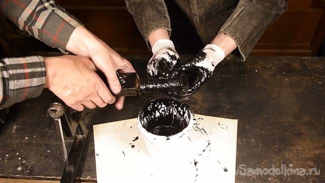 Эпоксидную смолу подкрасили техническим углеродом, по простому-сажей. За остову взяли пеньковую бечевку.