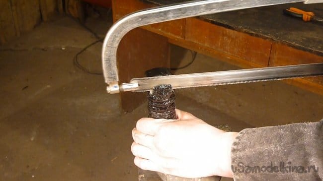 Навершие ножа решили сделать из старой хоккейной шайбы.