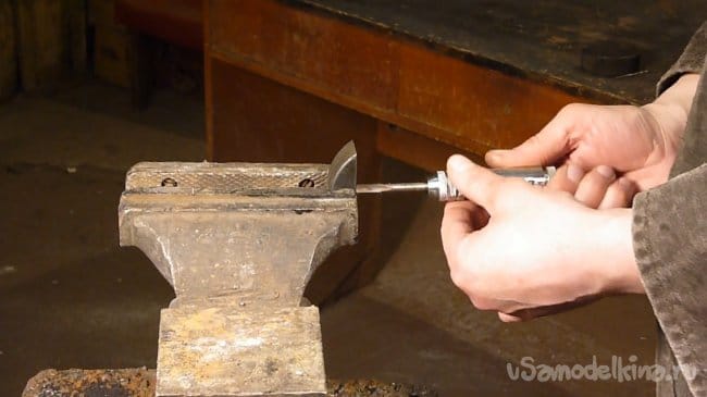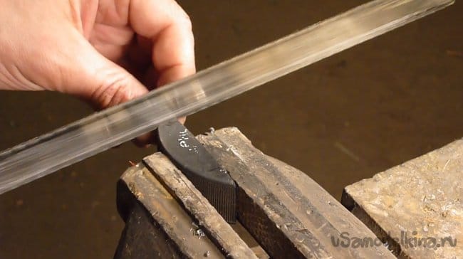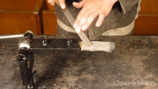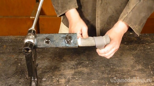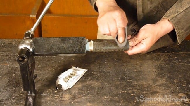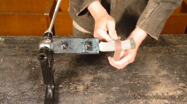 И туго намотали на основу рукояти, зажав клинок в специальные тиски. Работа немного грязновата, но чего не сделаешь ради эксперимента.