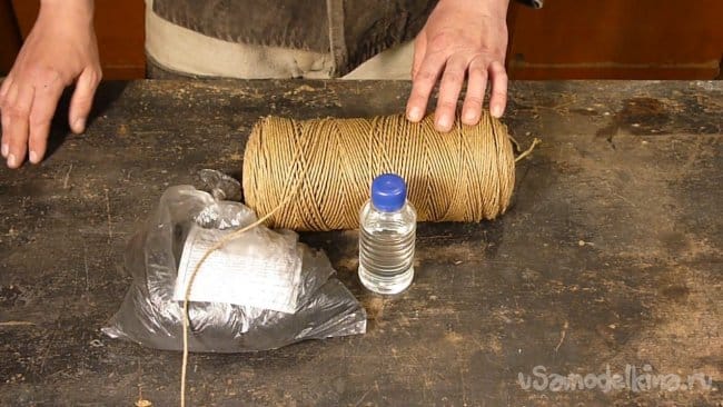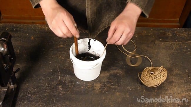 Пеньковую бечевку пропитали эпоксидной смолой.