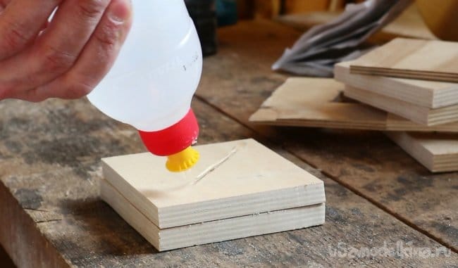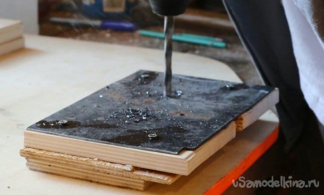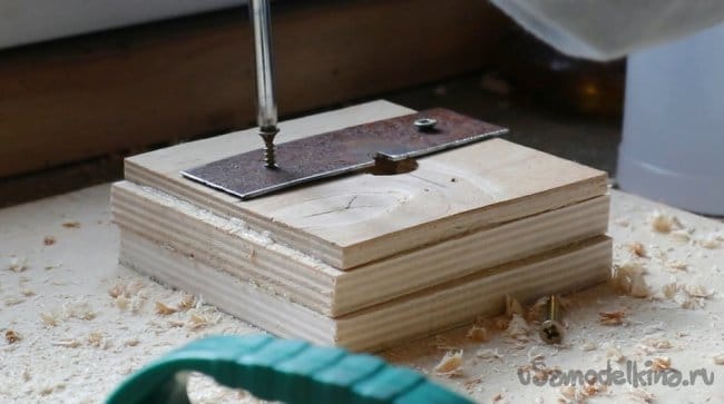 Так как кольцо нужно углубить в щит миллиметров на 30, из той же фанеры делаем проставки, приклеиваем их к щиту стопкой, сверлим отверстия под настенный крепеж и сверху накрываем металлическими полосками на которых кольцо будет держаться на стене