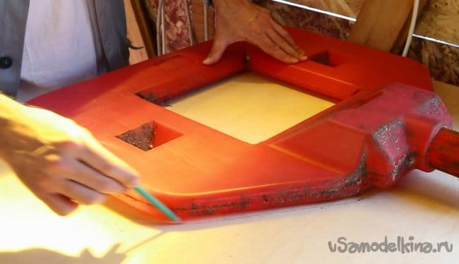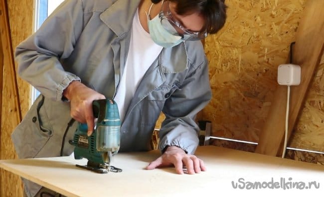 Переносим контур щита на фанеру и вырезаем лобзиком. Щит нам больше не нужен